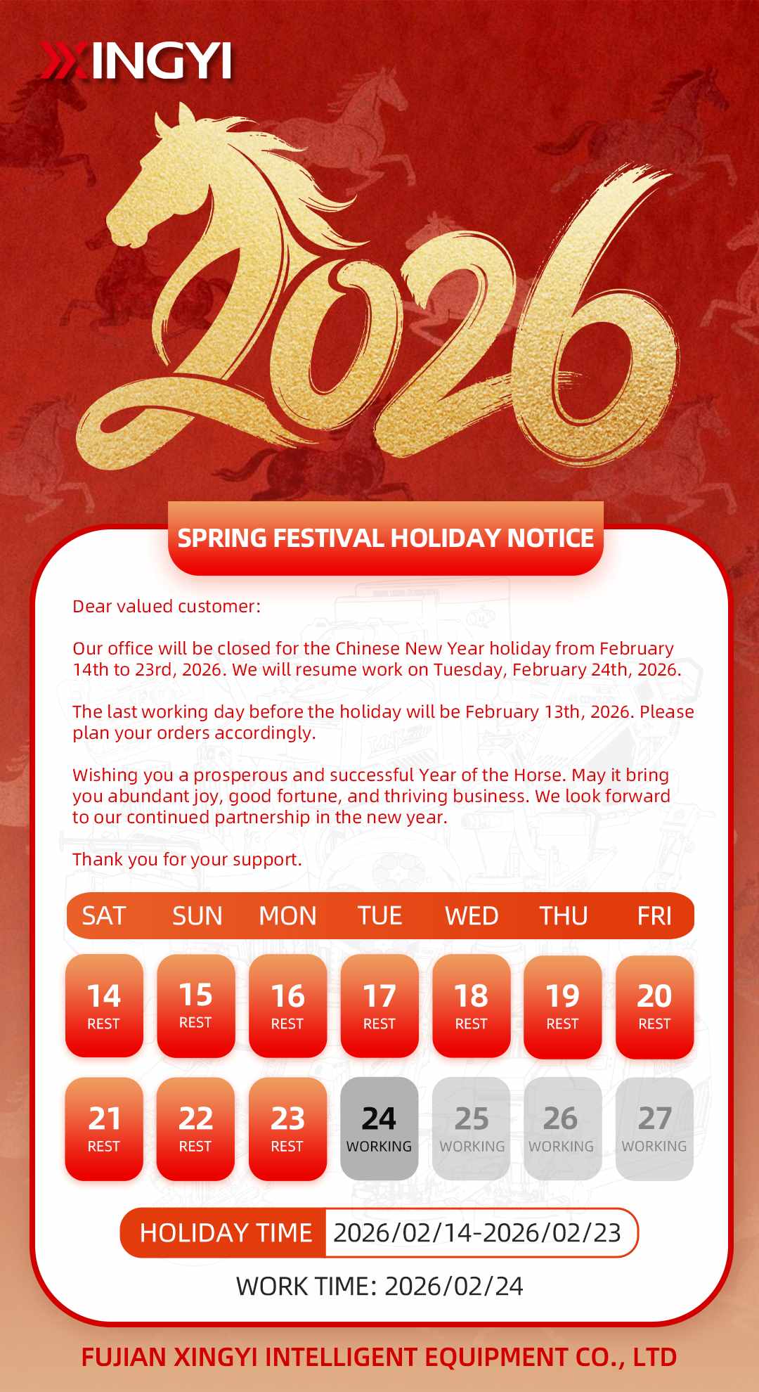 Welcoming the Year of the Horse: A Spring Festival Greeting from XINGYI